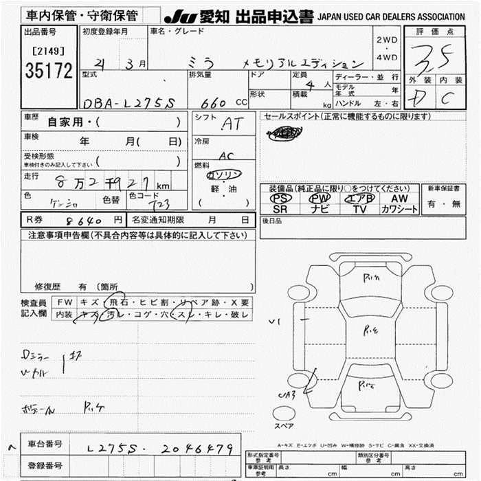 Статус выставлен на аукцион Лот 35172 Аукцион JU Aichi Дата аукциона 12.03.2026