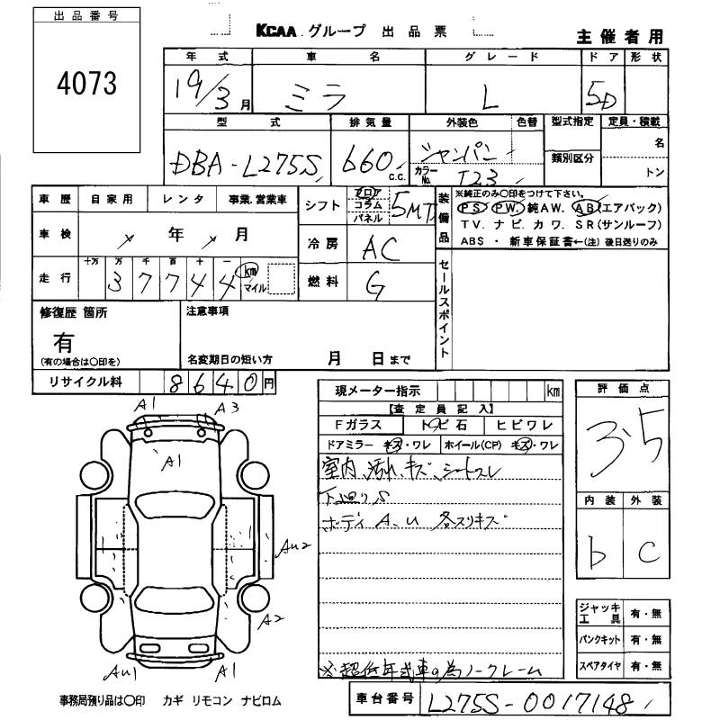 Статус выставлен на аукцион Лот 4073 Аукцион KCAA Fukuoka Дата аукциона 12.03.2026