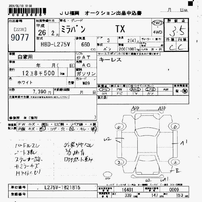 Статус выставлен на аукцион Лот 9077 Аукцион JU Fukuoka Дата аукциона 13.03.2026