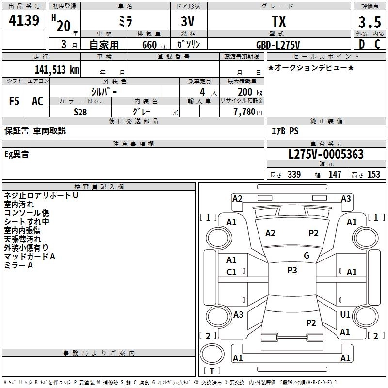 Статус выставлен на аукцион Лот 4139 Аукцион TAA Hyogo Дата аукциона 14.03.2026
