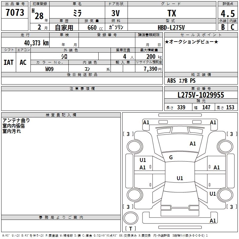 DAIHATSU MIRA 2016 г., лот № 7073