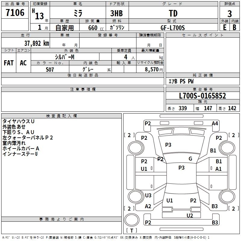 Год выпуска2001 Пробег 38 000 км КузовL700S КомплектацияTD