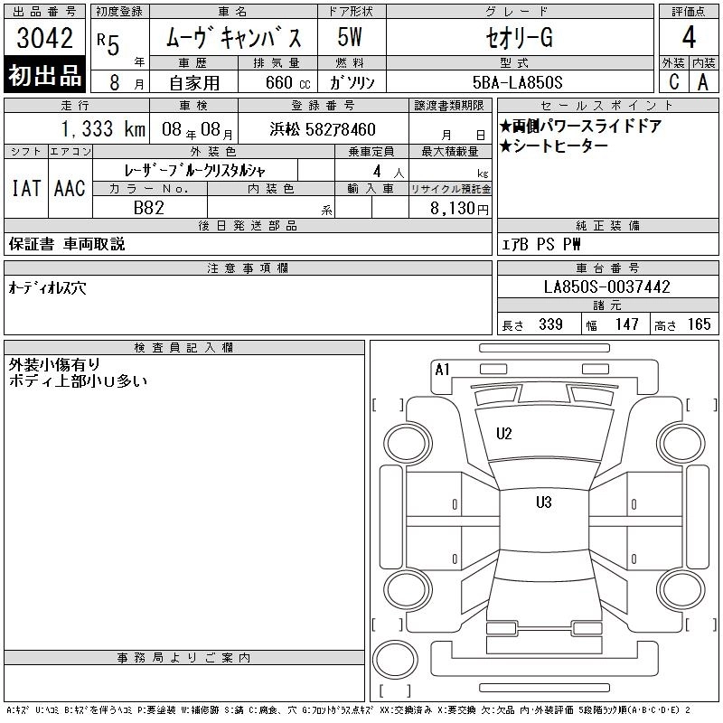 Статус выставлен на аукцион Лот 3042 Аукцион CAA Chubu Дата аукциона 24.12.2025