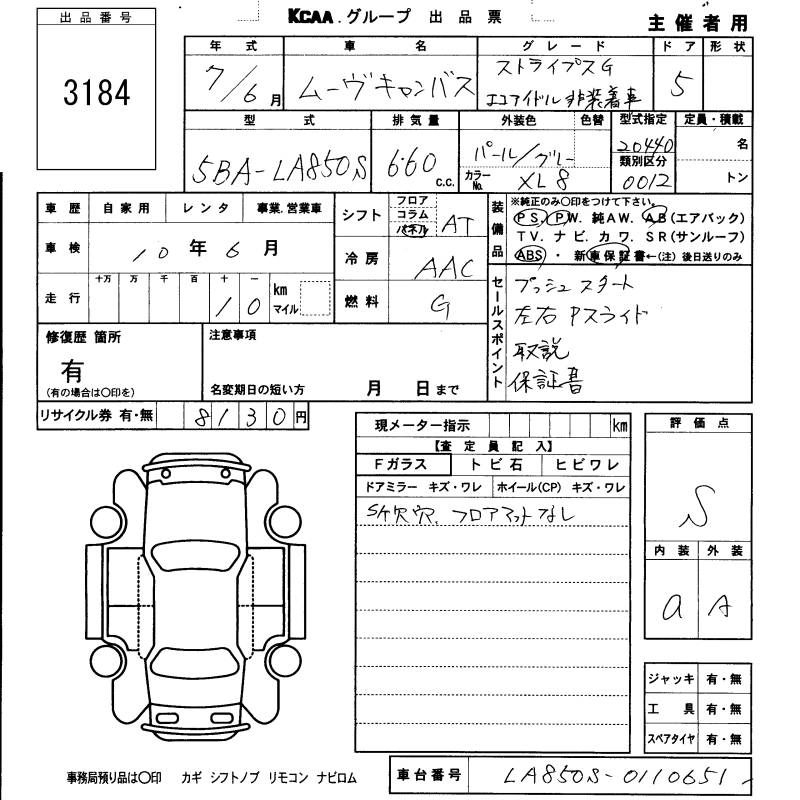 Статус выставлен на аукцион Лот 3184 Аукцион KCAA Fukuoka Дата аукциона 12.03.2026