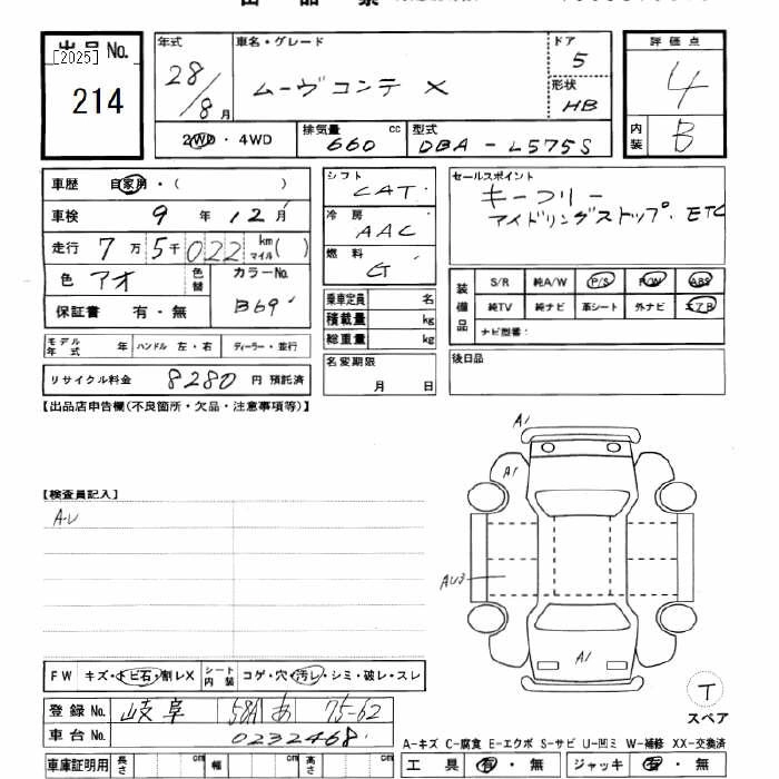 Статус выставлен на аукцион Лот 214 Аукцион JU Gifu Дата аукциона 20.12.2025