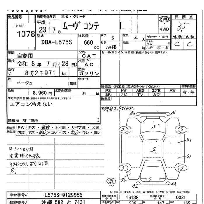Год выпуска2011 Пробег 83 000 км КузовDBA-L575S КомплектацияL