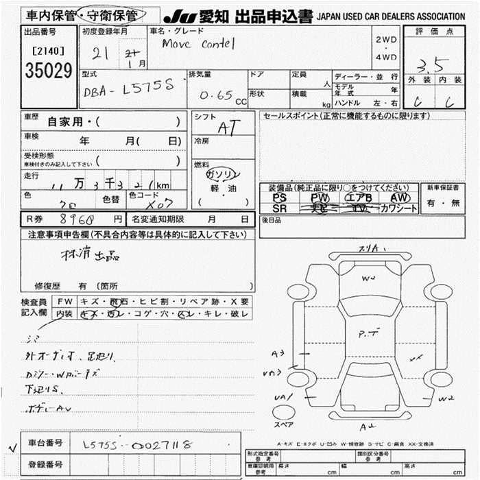DAIHATSU MOVE CONTE 2009 г., лот № 35029