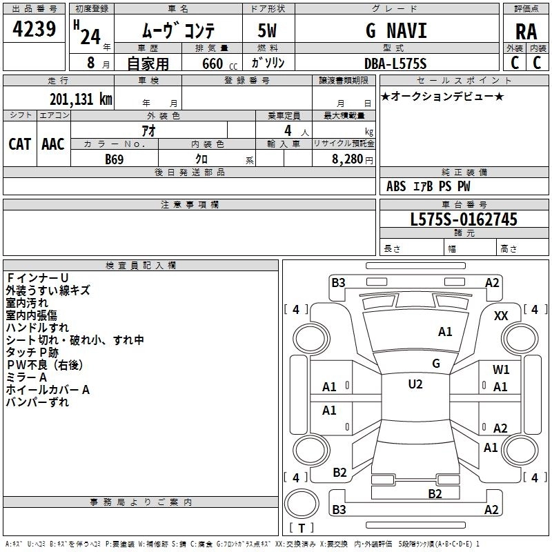Год выпуска2012 Пробег 201 000 км КузовL575S КомплектацияG NAVI