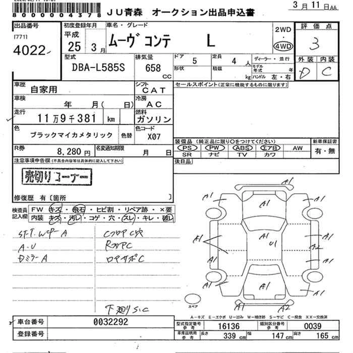 Статус выставлен на аукцион Лот 4022 Аукцион JU Aomori Дата аукциона 11.03.2026