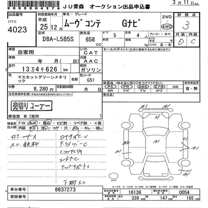 Статус выставлен на аукцион Лот 4023 Аукцион JU Aomori Дата аукциона 11.03.2026