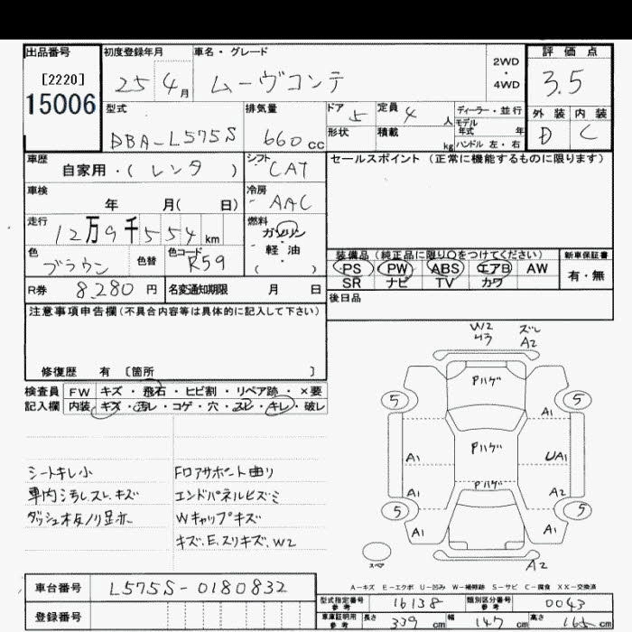 DAIHATSU MOVE CONTE 2013 г., лот № 15006