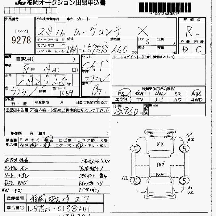 Статус выставлен на аукцион Лот 9278 Аукцион JU Fukuoka Дата аукциона 13.03.2026
