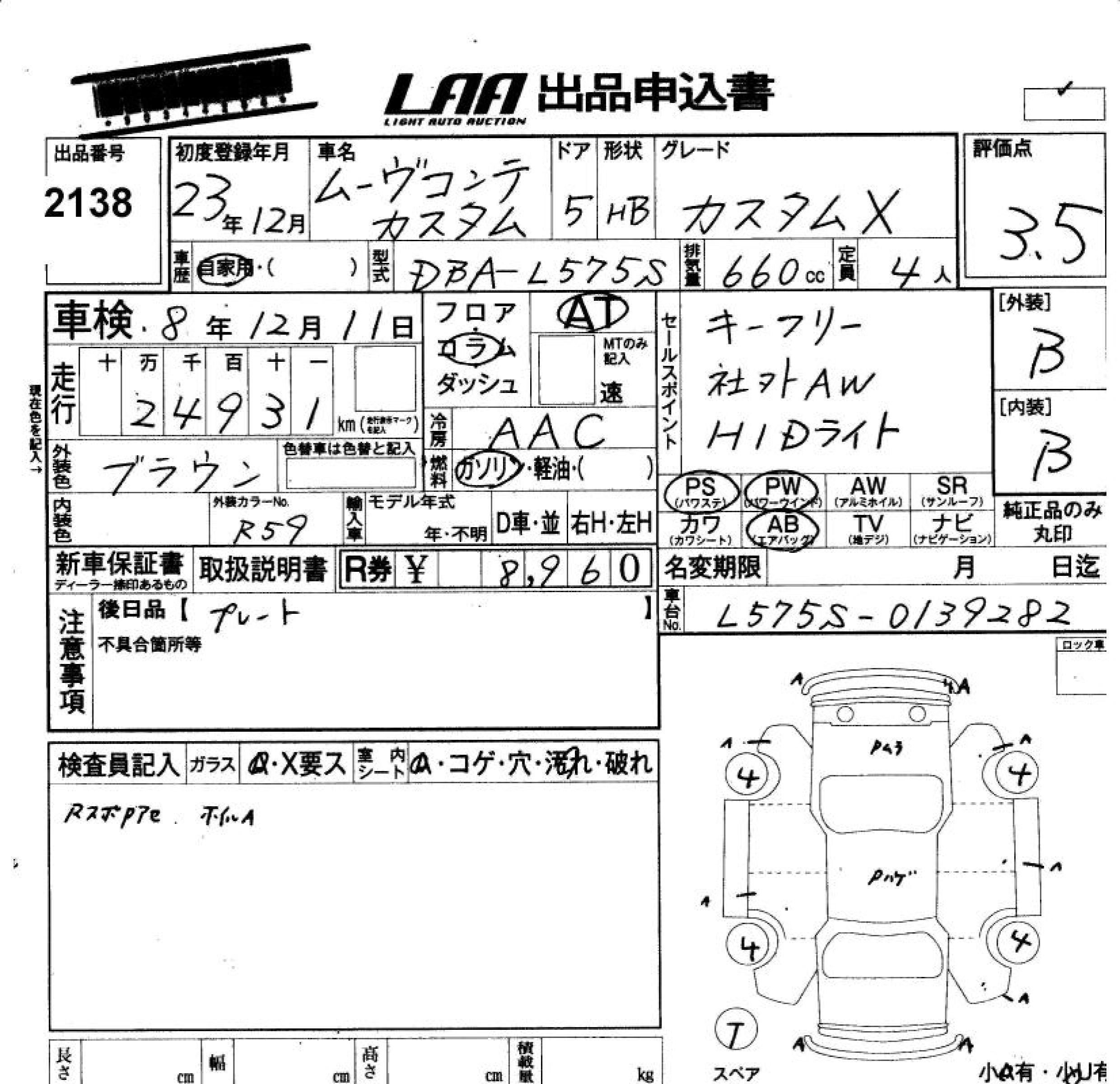 Статус не продан Лот 2138 Аукцион LAA Okayama Дата аукциона 20.03.2026