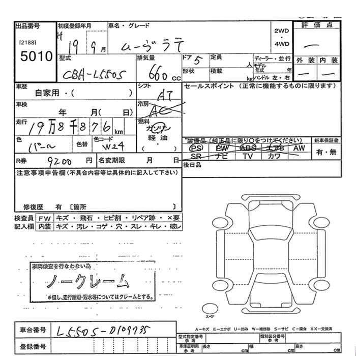 Статус не продан Лот 5010 Аукцион JU Gunma Дата аукциона 11.12.2025