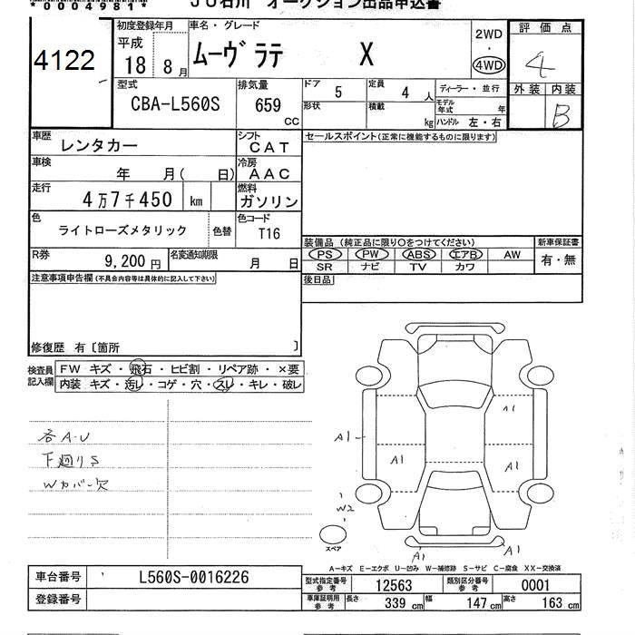 DAIHATSU MOVE LATTE 2006 г., лот № 4122