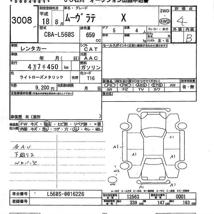 DAIHATSU MOVE LATTE 2006 г., лот № 3008