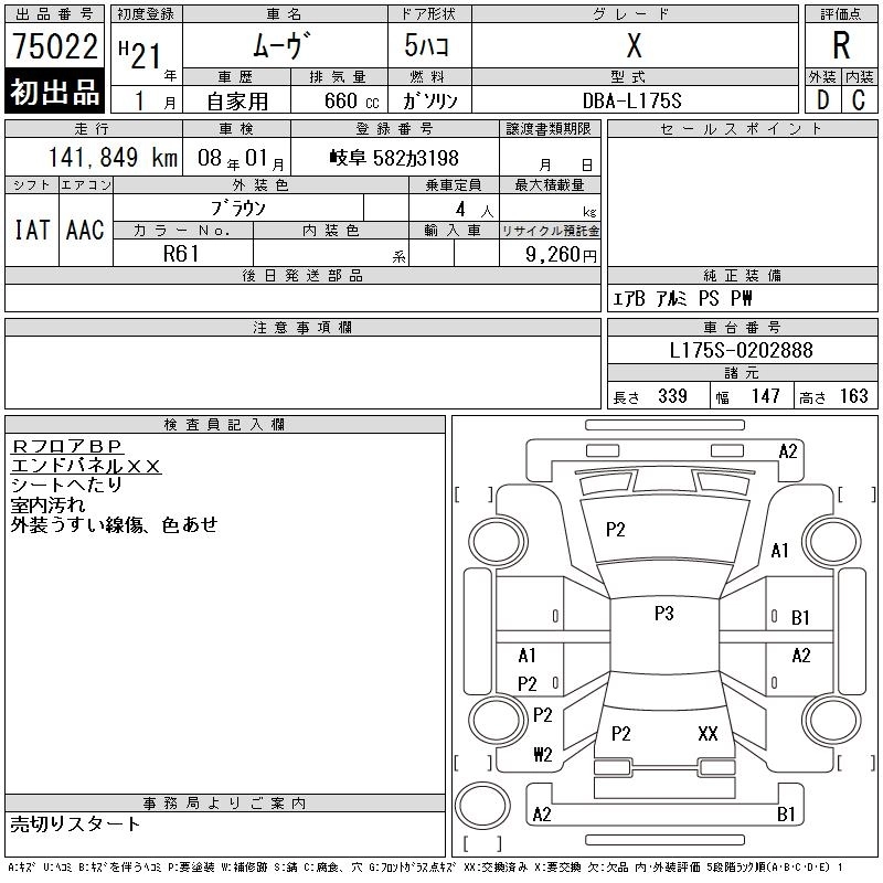 Статус выставлен на аукцион Лот 75022 Аукцион CAA Gifu Дата аукциона 21.10.2025