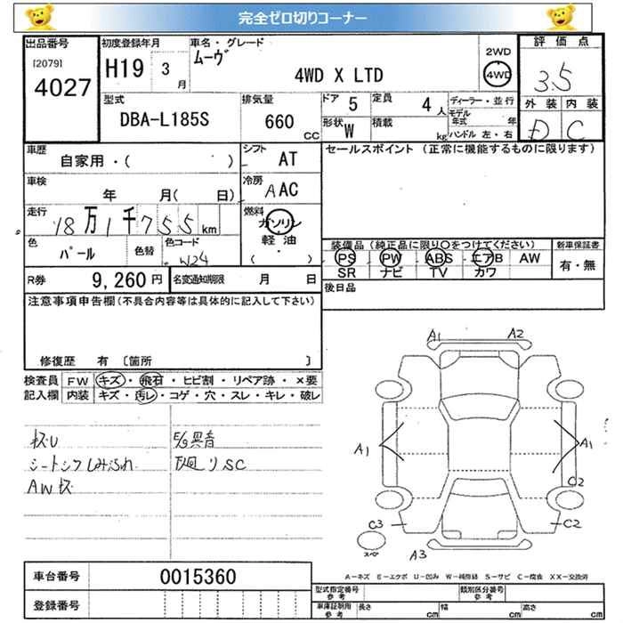 Стартовая цена авто на аукционе 0 ¥