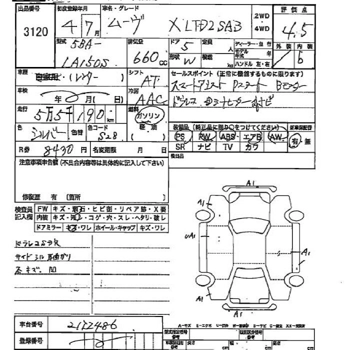 Стартовая цена авто на аукционе 380 000 ¥