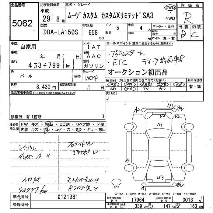 DAIHATSU MOVE 2017 г., лот № 5062