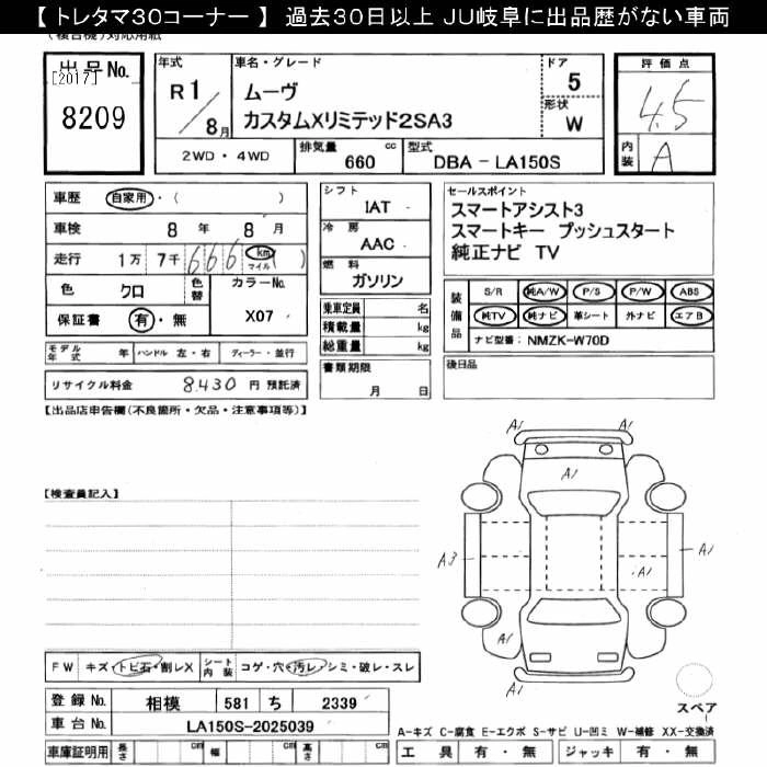 Статус выставлен на аукцион Лот 8209 Аукцион JU Gifu Дата аукциона 25.10.2025