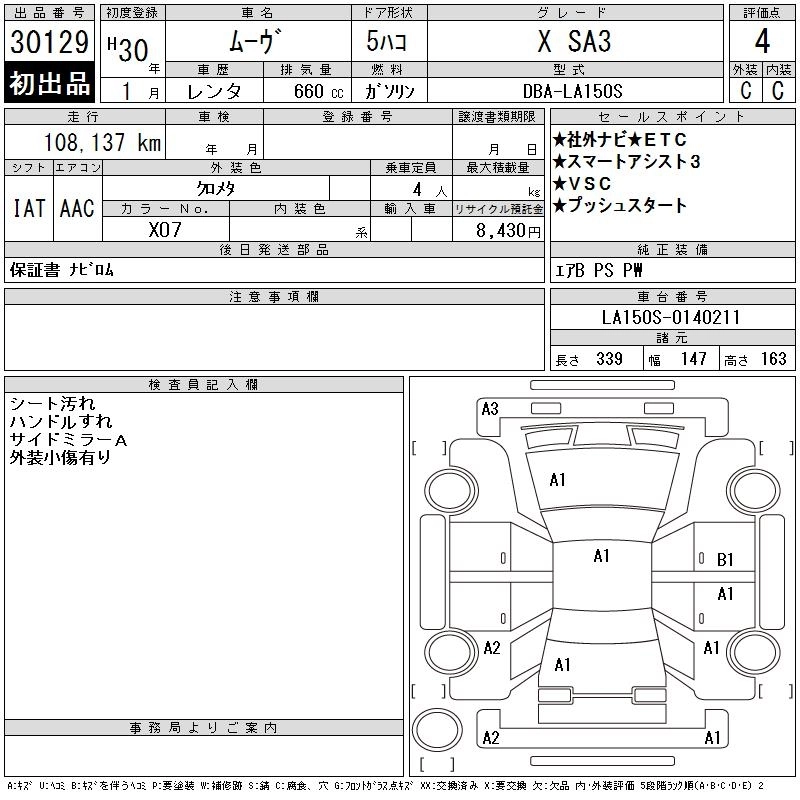 Статус выставлен на аукцион Лот 30129 Аукцион CAA Gifu Дата аукциона 09.12.2025