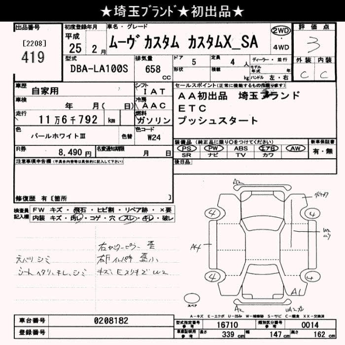 Статус выставлен на аукцион Лот 419 Аукцион JU Saitama Дата аукциона 09.12.2025