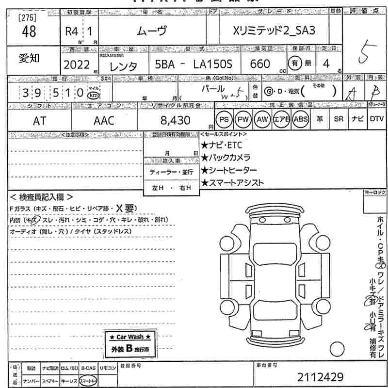 Статус продан Лот 48 Аукцион MIRIVE Aichi Дата аукциона 23.01.2026