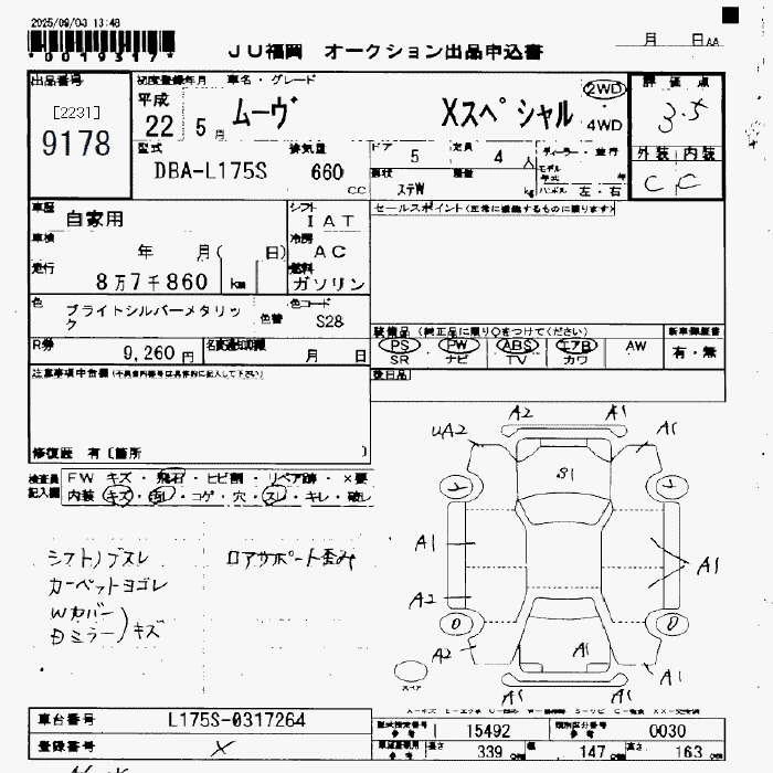 Статус не продан Лот 9178 Аукцион JU Fukuoka Дата аукциона 23.01.2026