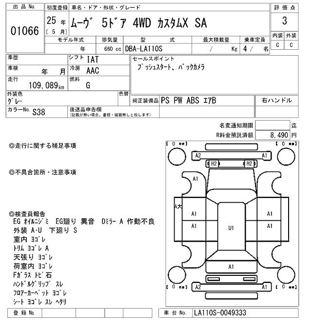 Статус продан Лот 1066 Аукцион ARAI Sendai Дата аукциона 23.01.2026