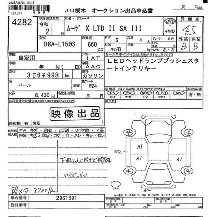 Статус не продан Лот 4282 Аукцион JU Tochigi Дата аукциона 23.01.2026