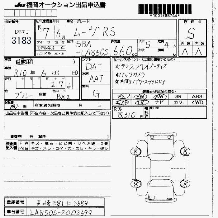 Статус продан Лот 3183 Аукцион JU Fukuoka Дата аукциона 23.01.2026