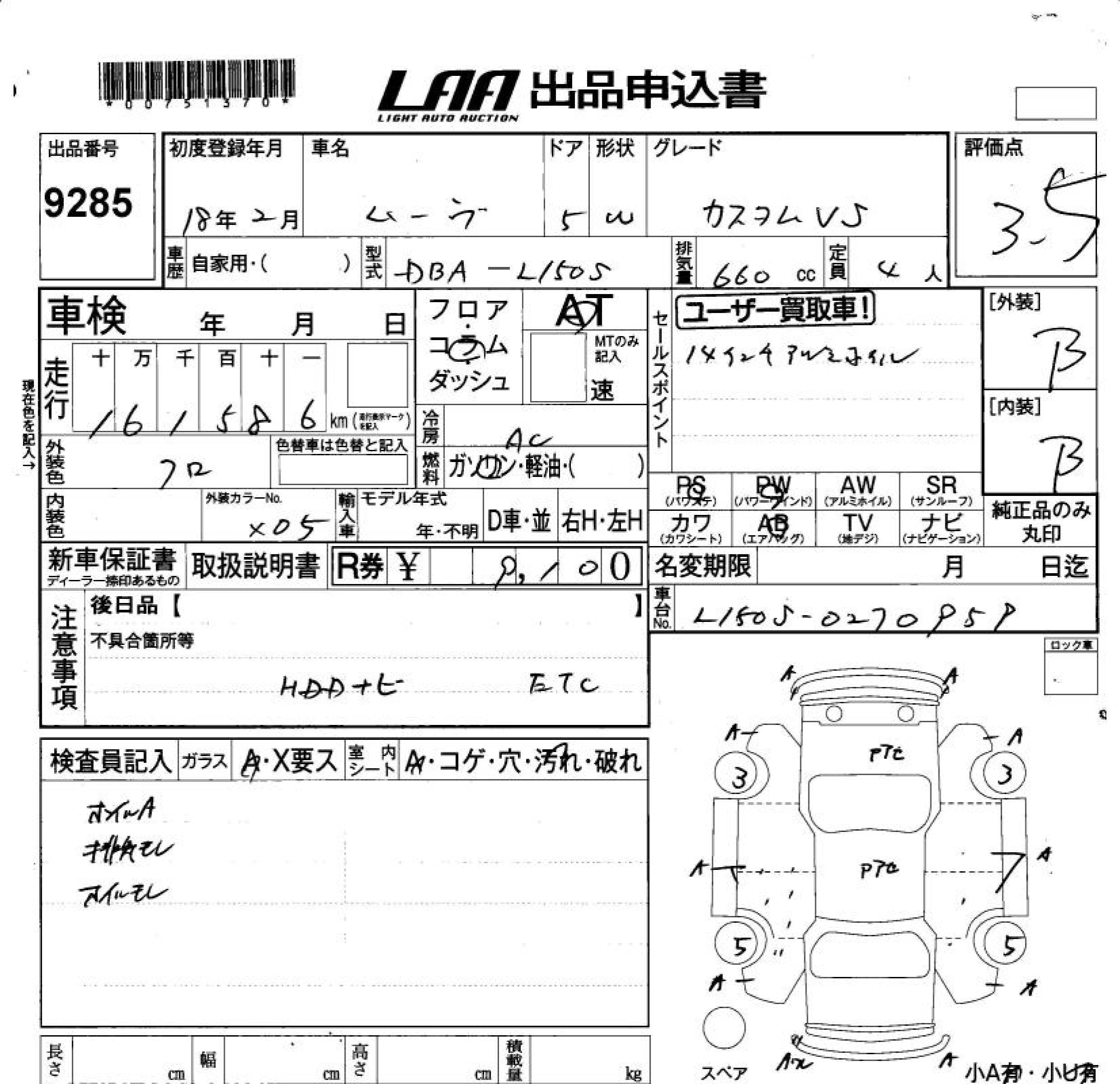 Статус продан Лот 9285 Аукцион LAA Okayama Дата аукциона 06.02.2026