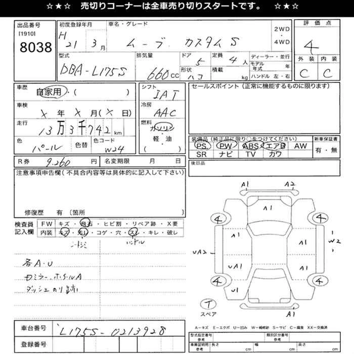 DAIHATSU MOVE 2009 г., лот № 8038