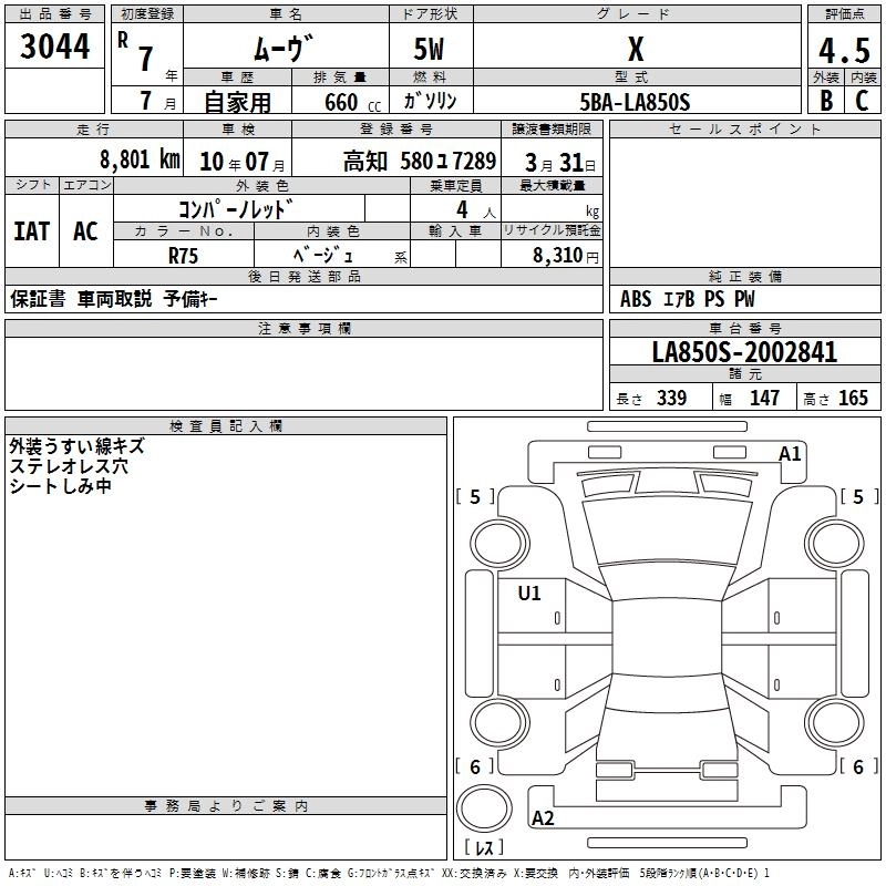 Статус выставлен на аукцион Лот 3044 Аукцион TAA Shikoku Дата аукциона 10.03.2026