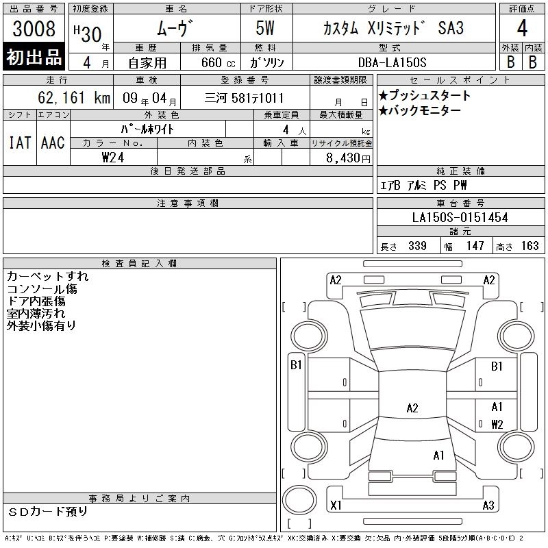 Статус выставлен на аукцион Лот 3008 Аукцион CAA Chubu Дата аукциона 11.03.2026