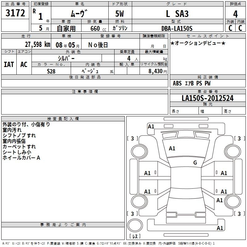 Статус выставлен на аукцион Лот 3172 Аукцион TAA Hiroshima Дата аукциона 10.03.2026