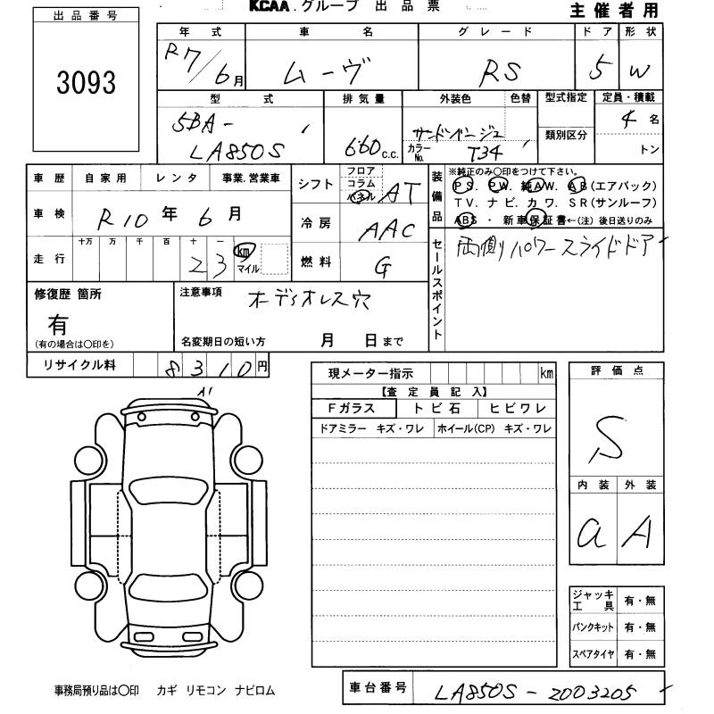 Статус не продан Лот 3093 Аукцион KCAA Fukuoka Дата аукциона 12.03.2026