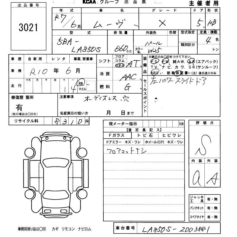 Статус не продан Лот 3021 Аукцион KCAA Fukuoka Дата аукциона 12.03.2026
