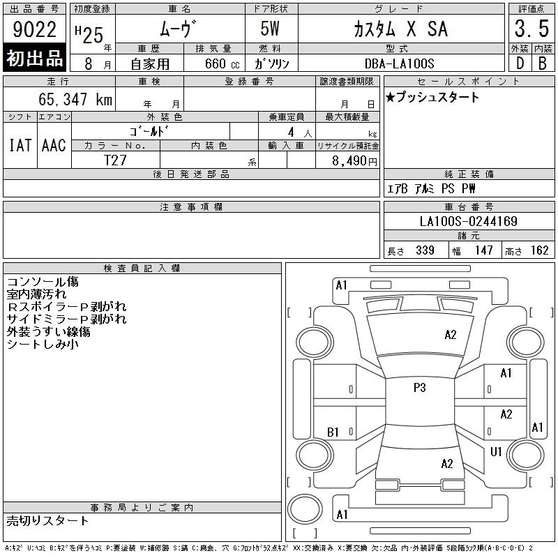 Статус выставлен на аукцион Лот 9022 Аукцион CAA Chubu Дата аукциона 11.03.2026