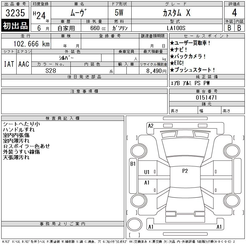 Статус выставлен на аукцион Лот 3235 Аукцион CAA Chubu Дата аукциона 11.03.2026