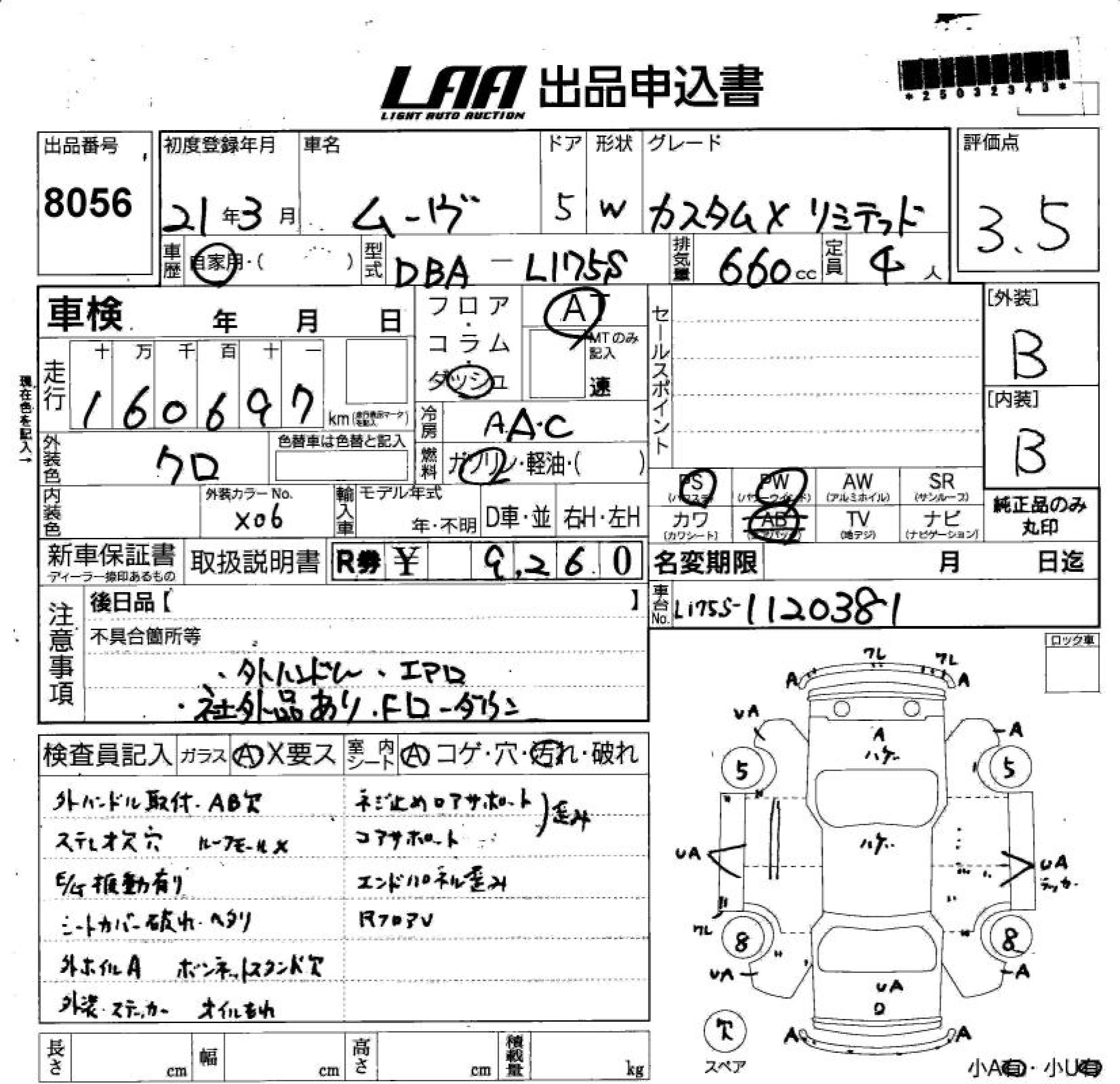 Статус выставлен на аукцион Лот 8056 Аукцион LAA Shikoku Дата аукциона 11.03.2026
