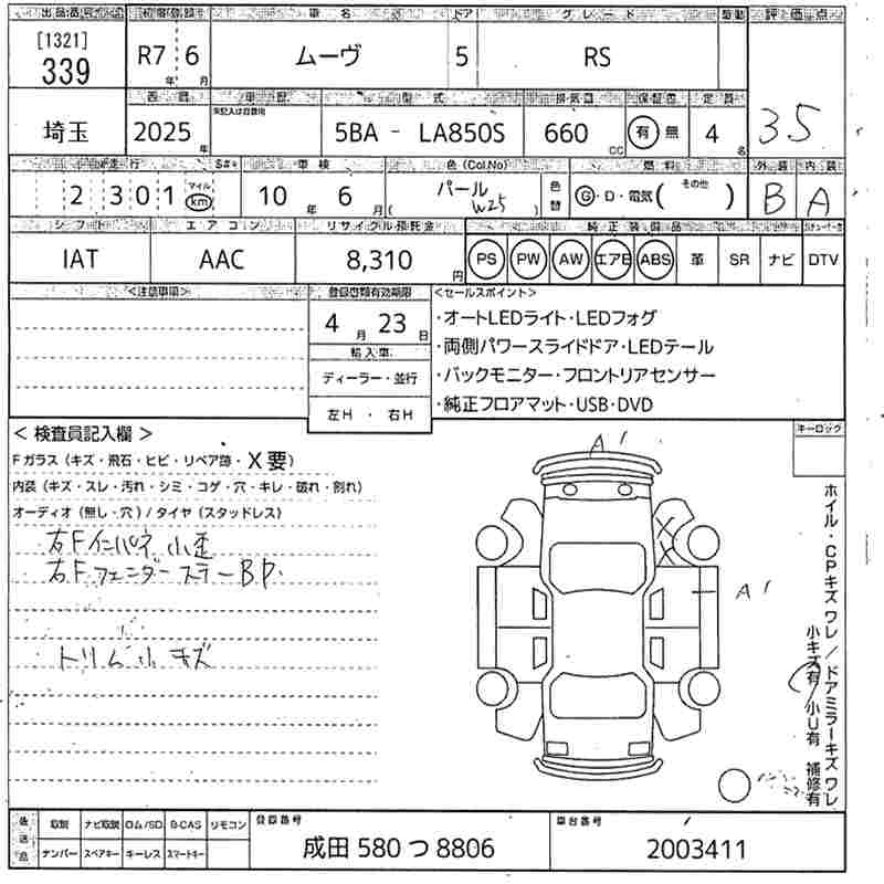 Статус выставлен на аукцион Лот 339 Аукцион MIRIVE Saitama Дата аукциона 11.03.2026