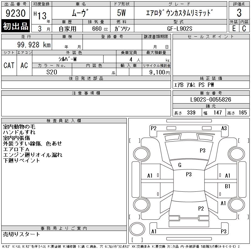 Статус выставлен на аукцион Лот 9230 Аукцион CAA Chubu Дата аукциона 11.03.2026