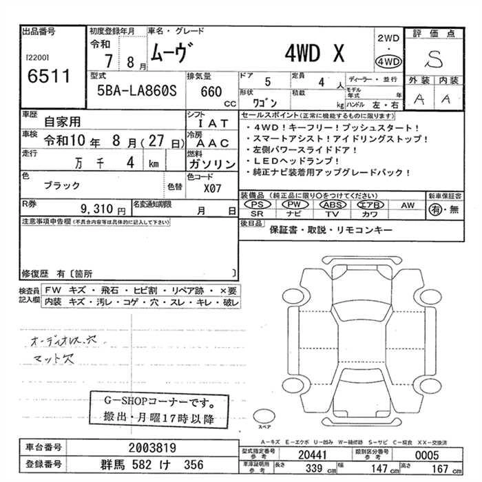 Статус выставлен на аукцион Лот 6511 Аукцион JU Gunma Дата аукциона 12.03.2026