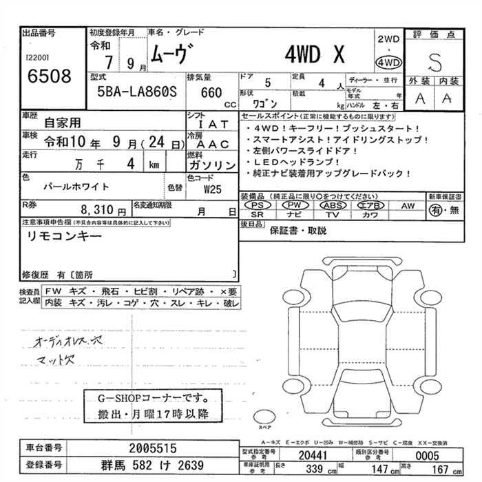 Статус выставлен на аукцион Лот 6508 Аукцион JU Gunma Дата аукциона 12.03.2026