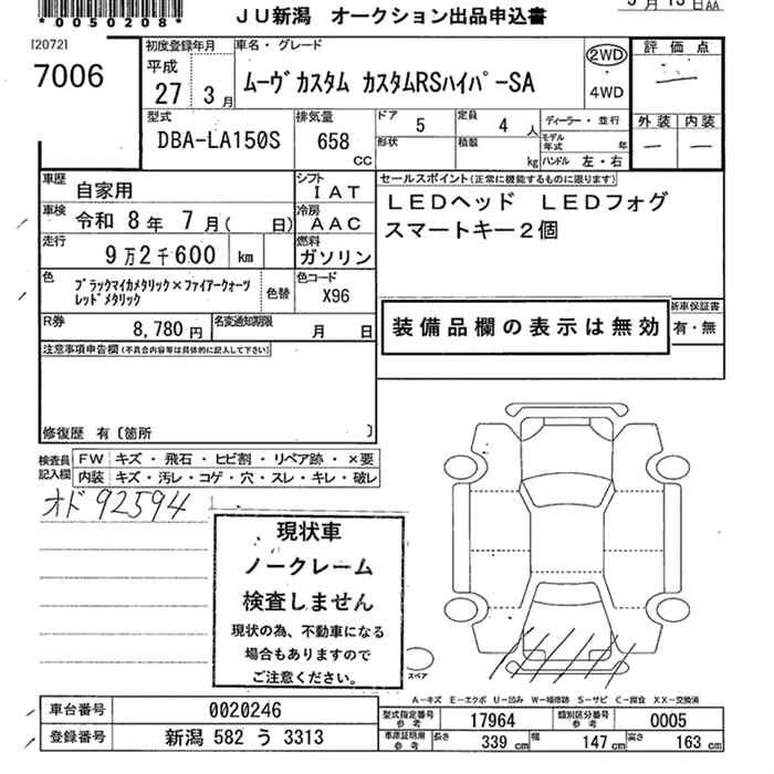Статус выставлен на аукцион Лот 7006 Аукцион JU Niigata Дата аукциона 13.03.2026