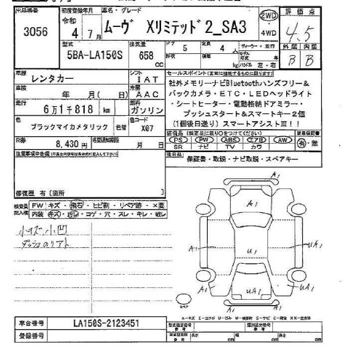 Стартовая цена авто на аукционе 150 000 ¥