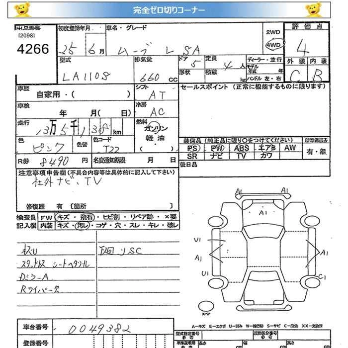Стартовая цена авто на аукционе 0 ¥