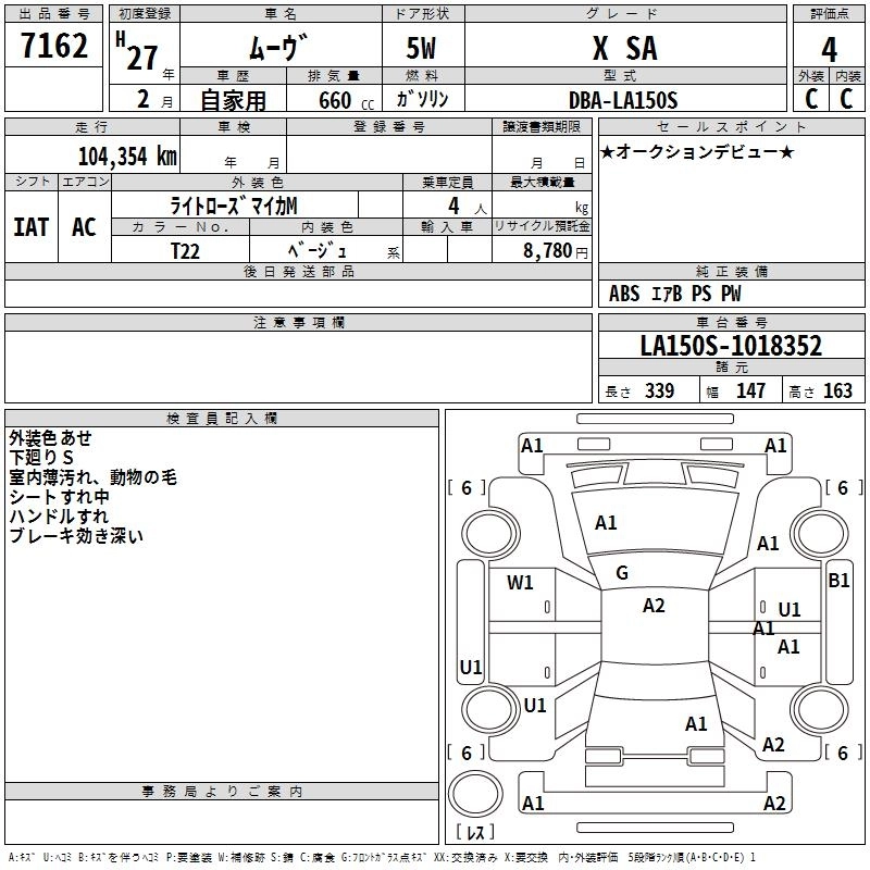 Статус выставлен на аукцион Лот 7162 Аукцион TAA Hokkaido Дата аукциона 12.03.2026